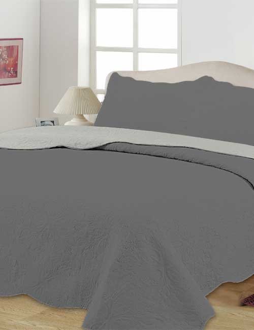 Colcha Rihanna Estampada Doble Vista Flores Gris Claro