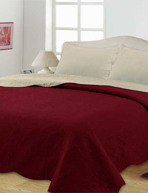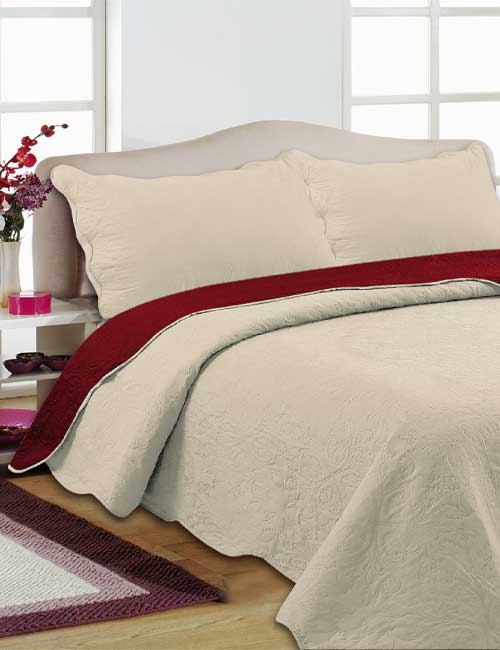 Colcha Paola Doble Vista Hojas Beige