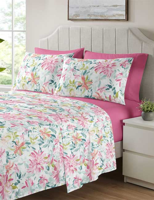 • Sábana Estampada 14000 NE Jardín Rosa Palo