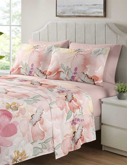 • Sábana Estampada 14000 NE Flores Rosa Palo