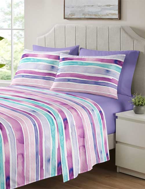 • Sábana Estampada 14000 NE Rayas Lavanda