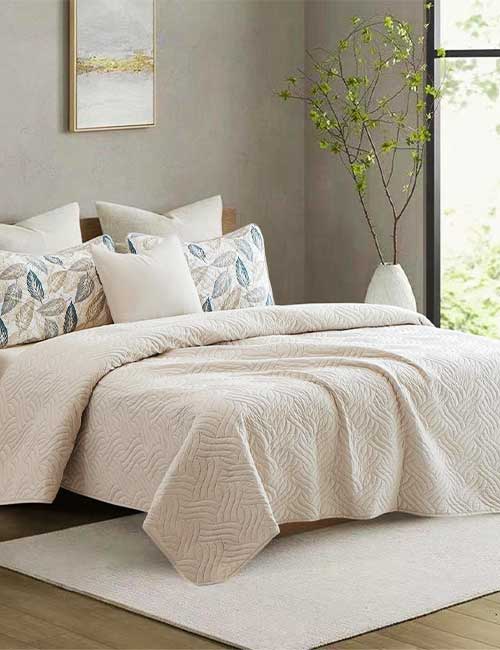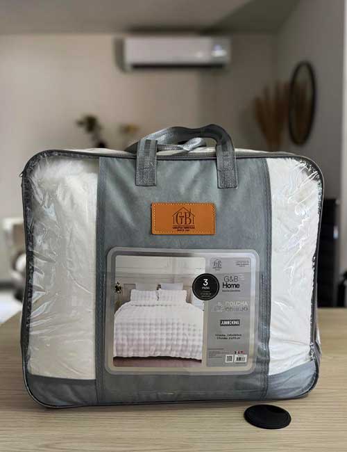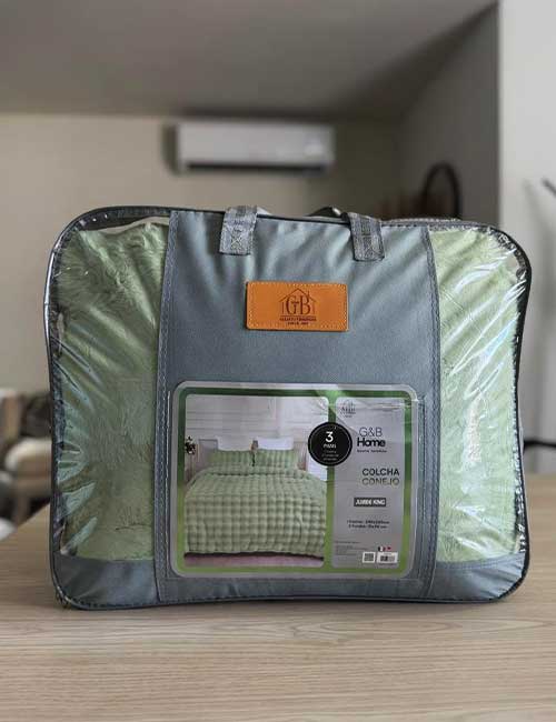 Este juego incluye una colcha y dos fundas para almohada, permitiendo vestir la cama de forma completa y armoniosa. Su diseño versátil se adapta fácilmente a diferentes estilos de decoración, siendo una excelente opción tanto para el hogar como para departamentos en renta, Airbnb, hostales u hoteles.