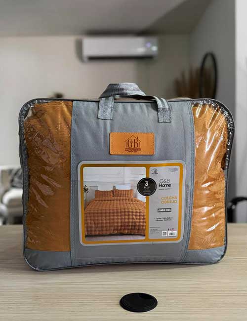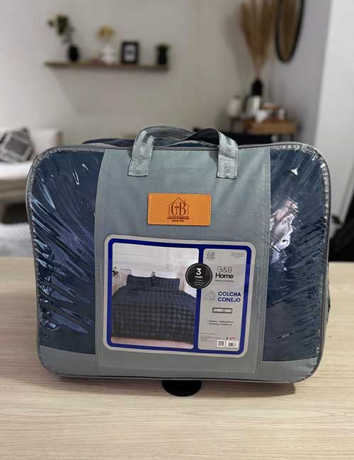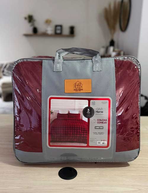 La Colcha Conejo está disponible en tamaños Jumbo Queen y Jumbo King, ofreciendo una cobertura amplia que brinda comodidad y una presentación atractiva en la cama.