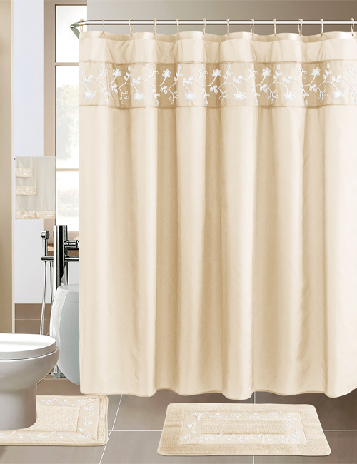 La Cortina de Baño Edith está diseñada para aportar elegancia y armonía al baño, su bordado decorativo de ramas con hojas y flores crea un estilo natural y sofisticado.