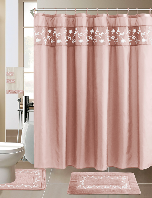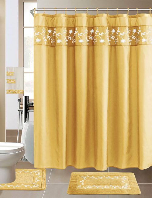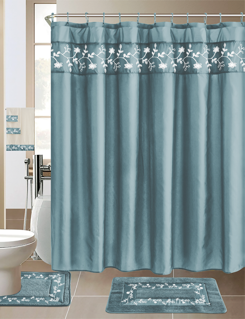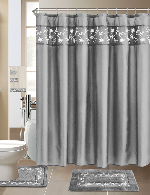 Este completo set de 18 piezas incluye cortina de baño, aros decorativos, tapetes y toallas, ofreciendo una solución práctica y coordinada para vestir el baño. Su diseño versátil permite integrarlo fácilmente en diferentes estilos de decoración, logrando un ambiente acogedor y elegante.