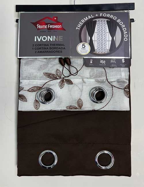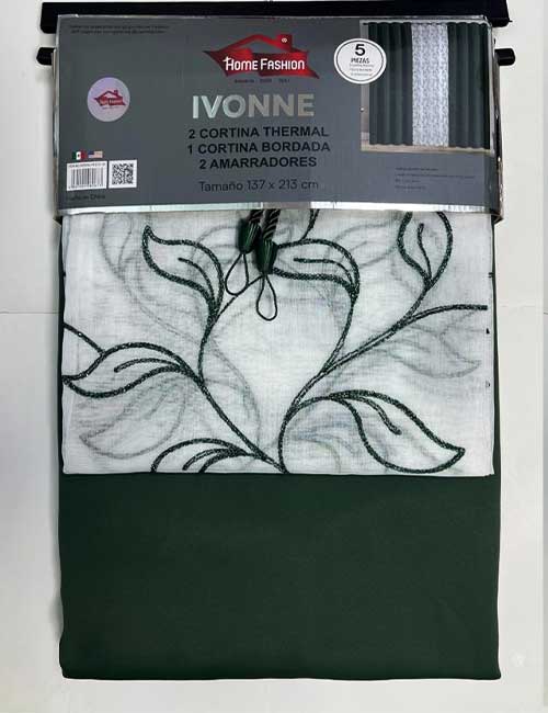 La Cortina Ivonne está diseñada para brindar funcionalidad y un acabado decorativo elegante, sus paneles thermal ayudan a regular la temperatura del espacio, mejorar la privacidad y contribuir al ahorro energético, incluye una cortina bordada central que complementa el diseño del conjunto.