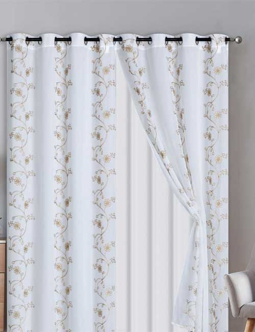 Incluye ojillos metálicos que facilitan su colocación y brindan un toque decorativo limpio y contemporáneo.