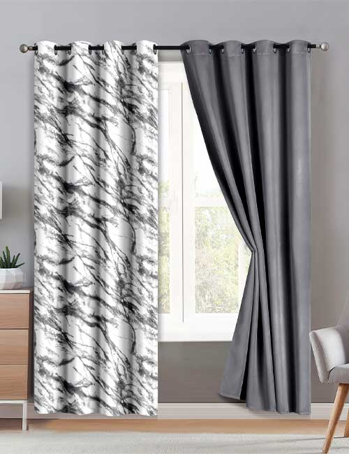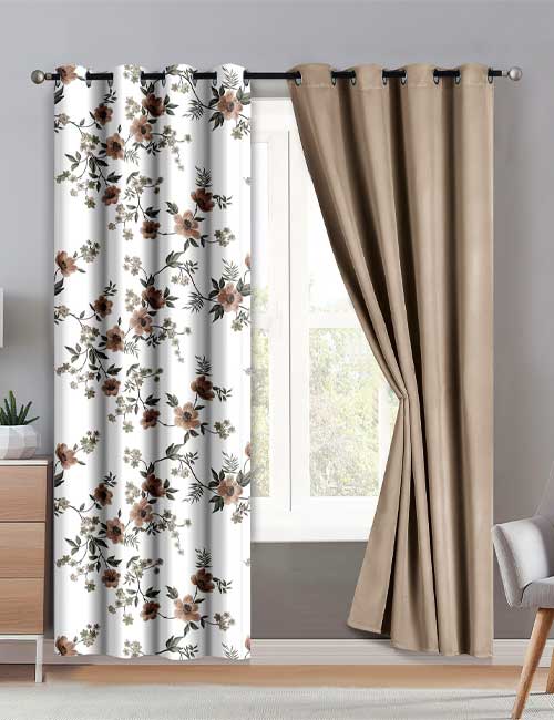 Fabricada con tela 100% poliéster, esta cortina ofrece múltiples beneficios como control de luz, apoyo en el aislamiento térmico y protección para muebles y telas, ayudando a reducir la exposición directa al sol dentro de la habitación.